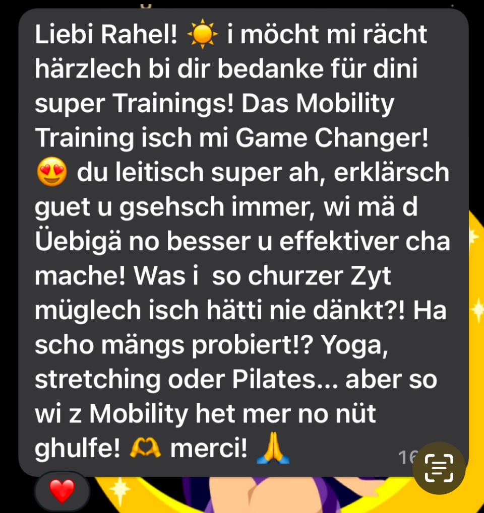 Wenn du es auf meine Seite geschafft hast, dann bist du wahrscheinlich schon eine Weile auf der Suche nach einer Trainingsmethode, die dich nicht physisch ausbrennt. Du willst weder Bodybuilding, noch Crossfit/Hyrox oder Pilates machen. Du wünschst dir ein Training, das du auch nach einem langen Arbeitstag machen kannst. Ohne, dass du im Voraus nach einer Ausrede suchst.